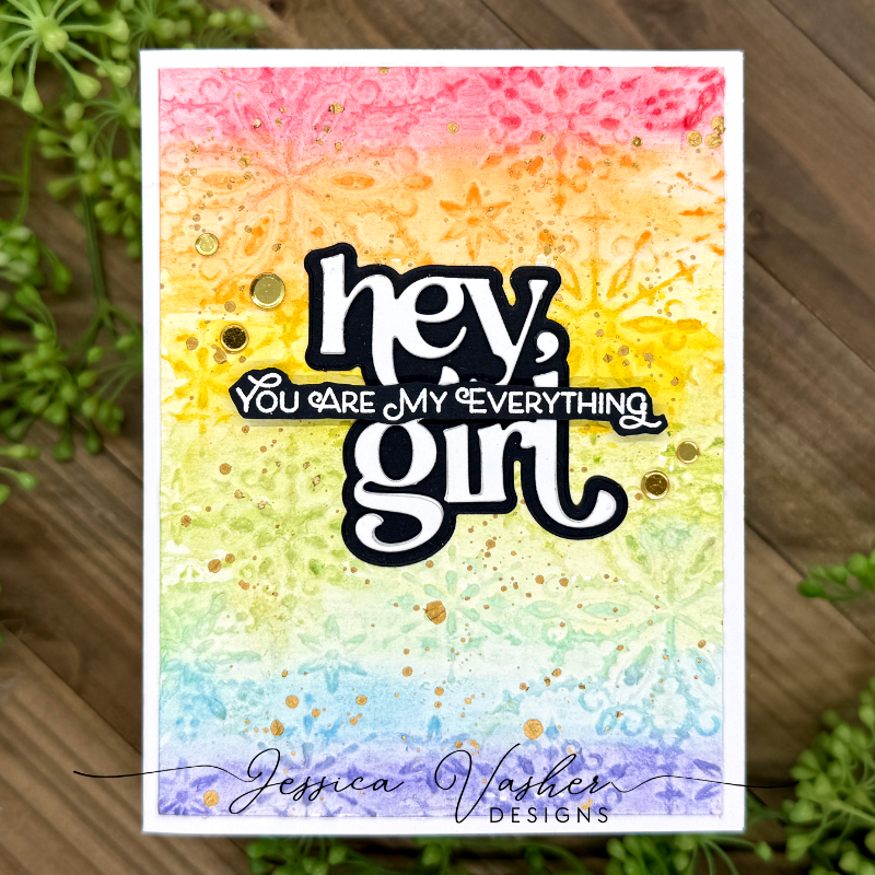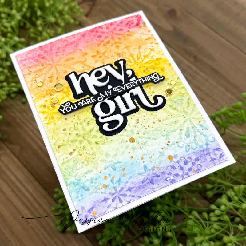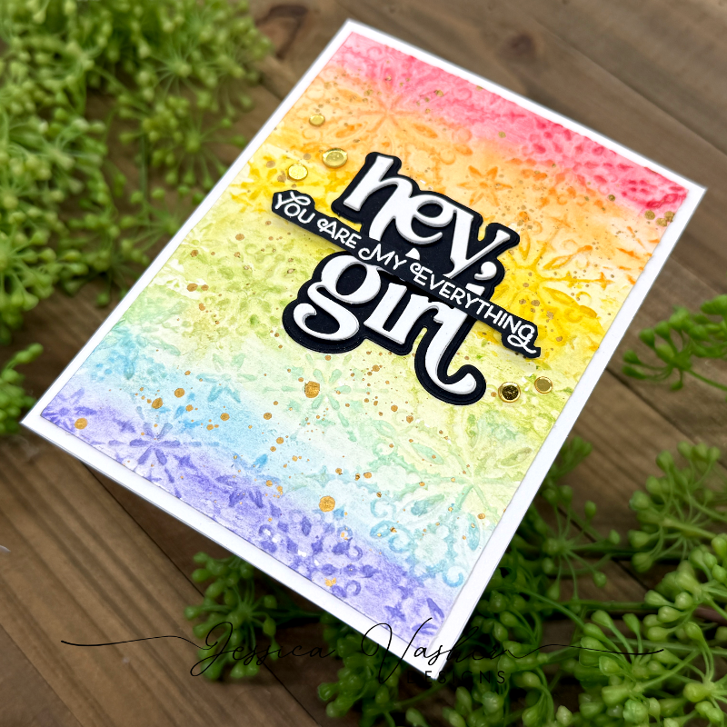 I love how you paired the bold sentiment with the vibrant colors! It really feels like a celebration of love and positivity. The combination of texture from the embossing folder and those rainbow splash drops really makes the card pop!